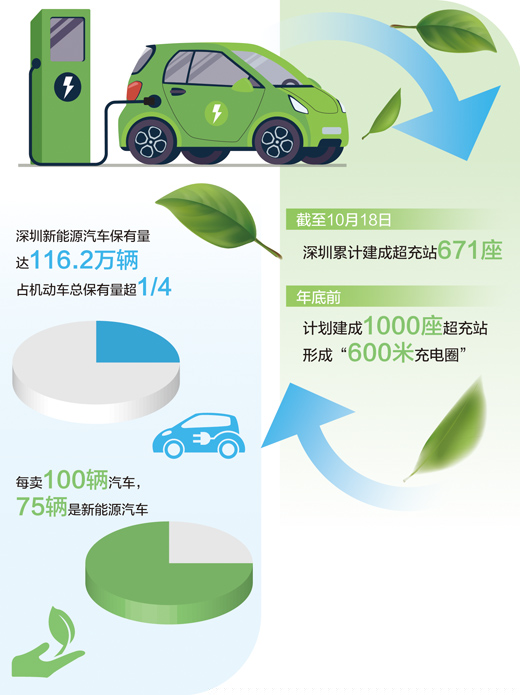 在公共汽車、出租車全面電動化的基礎(chǔ)之上,深圳新能源汽車保有量已達116.2萬輛,占機動車總保有量超1/4,每賣100輛汽車,75輛是新能源汽車。