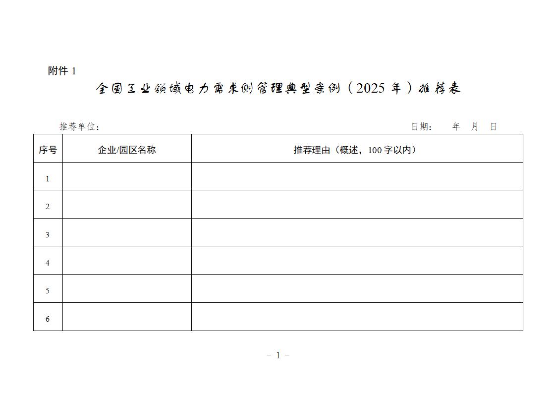 附件:1. 全國工業(yè)領域電力需求側管理典型案例(2025年)推薦表