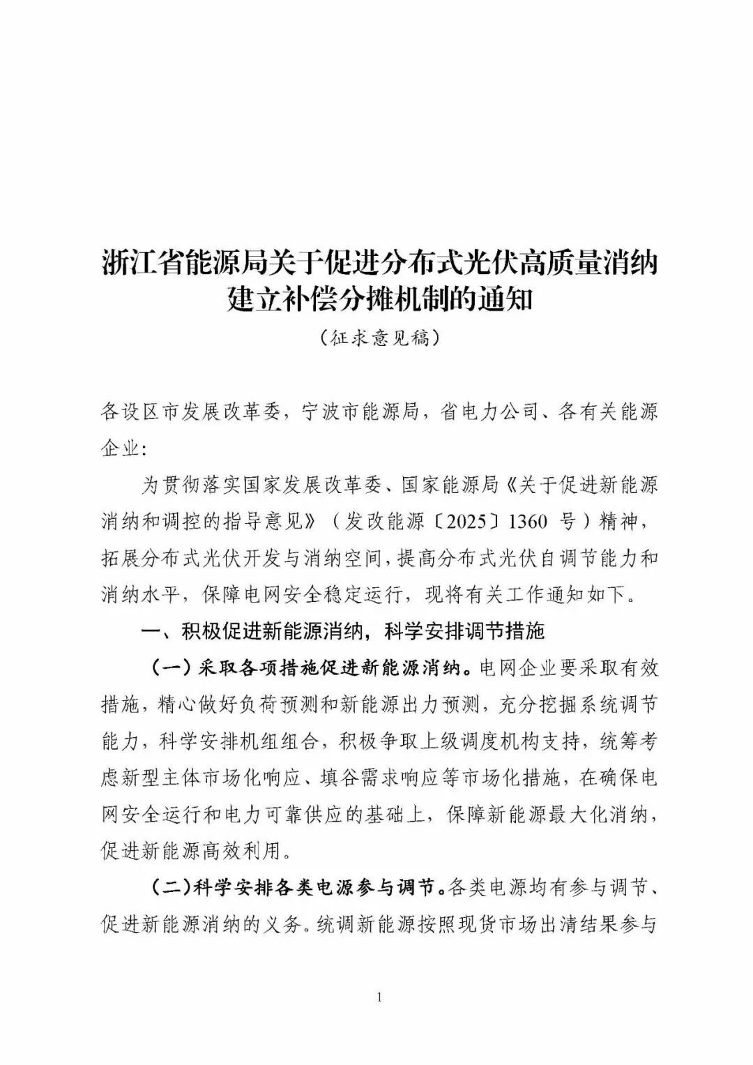 1月7日,浙江省發(fā)改委發(fā)布《浙江省能源局關(guān)于促進(jìn)分布式光伏高質(zhì)量消納建立補(bǔ)償分?jǐn)倷C(jī)制的通知(征求意見(jiàn)稿)》。文件指出,拓展分布式光伏開(kāi)發(fā)與消納空間,提高分布式光伏自調(diào)節(jié)能力和消納水平,保障電網(wǎng)安全穩(wěn)定運(yùn)行。