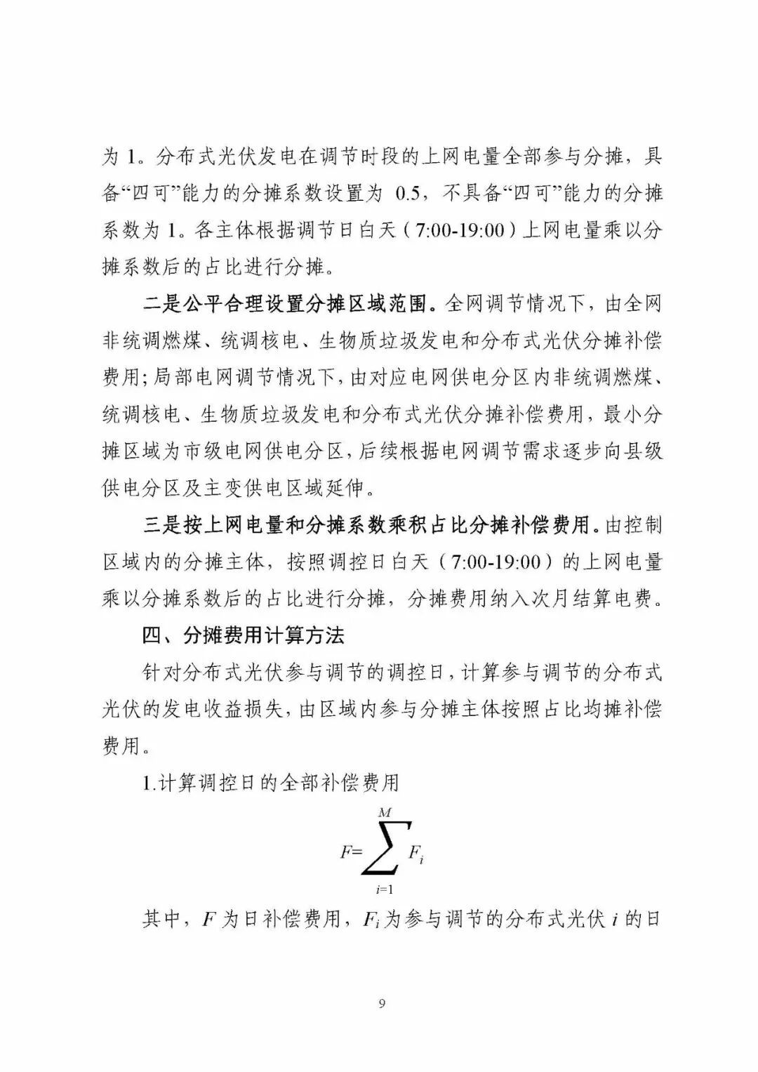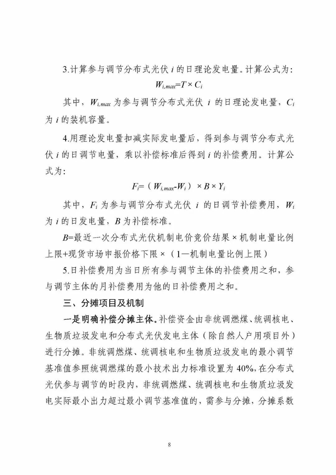 參與調(diào)節(jié)的分布式光伏主體獲得補(bǔ)償,補(bǔ)償費(fèi)用納入次月結(jié)算電費(fèi)。補(bǔ)償資金由非統(tǒng)調(diào)燃煤、統(tǒng)調(diào)核電、生物質(zhì)垃圾發(fā)電和分布式光伏發(fā)電主體(除自然人戶用項(xiàng)目外)進(jìn)行分?jǐn)偂?/p>