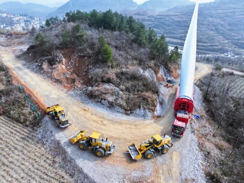 鳳凰項目場區(qū)地形分散,大件設(shè)備運輸需跨湘黔兩省,協(xié)調(diào)難度突出,且山體巖石堅硬,場內(nèi)道路和風(fēng)機基礎(chǔ)施工難度大。面對諸多困難,項目管理團隊迎難而上,統(tǒng)籌調(diào)度各方資源,聯(lián)合湖南分公司、各參建單位成立專項工作組,建立聯(lián)動溝通機制,推進各類協(xié)調(diào)事項處理;通過優(yōu)化設(shè)備選型、采用專項爆破施工工藝等方式,破解施工瓶頸,保障項目順利完成并網(wǎng)目標(biāo)。