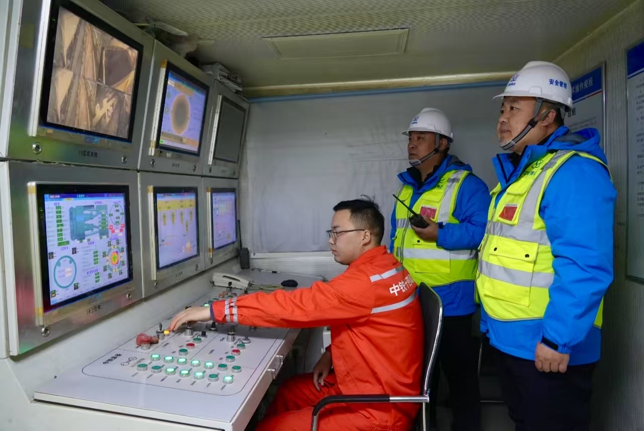 圖為工作人員在查看現(xiàn)場(chǎng)施工情況。王中信攝