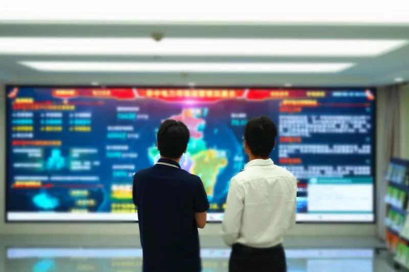 ▲國網(wǎng)華中分部市場交易大廳工作人員查看當(dāng)天交易數(shù)據(jù)