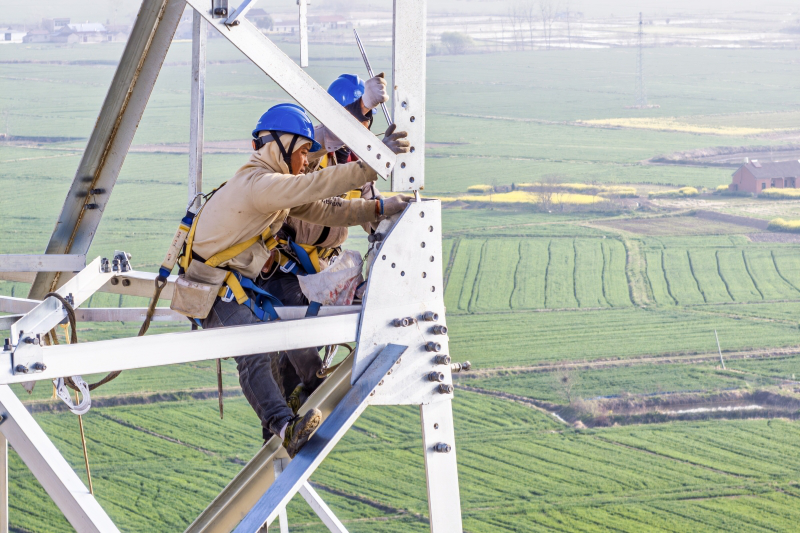 ▲陜北—安徽±800千伏特高壓直流輸電工程鐵塔組立施工現(xiàn)場(chǎng)