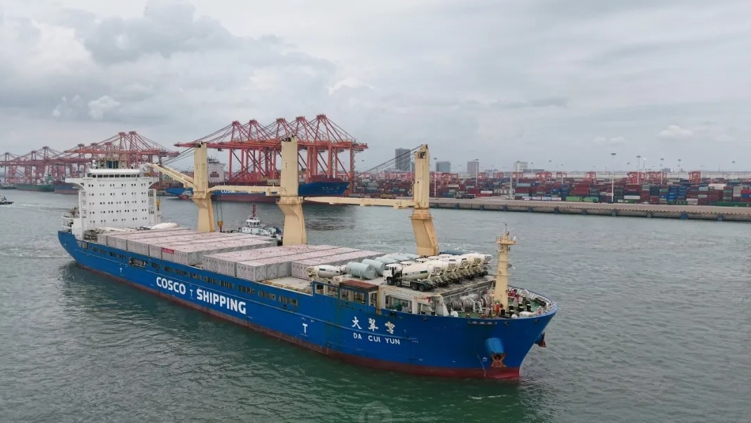 近日,中國遠(yuǎn)洋海運“大翠云”輪裝載著12.5GWh全球最大電網(wǎng)側(cè)儲能項目首船120臺45噸級比亞迪儲能柜,從廣西北部灣港欽州港區(qū)順利啟運奔赴沙特達(dá)曼項目地,該項目共有2364臺儲能柜,是目前全球最大的電網(wǎng)側(cè)儲能項目。中國遠(yuǎn)洋海運旗下中遠(yuǎn)海運特運為項目提供國內(nèi)陸運段與海運段全程物流解決方案和運輸服務(wù)。
