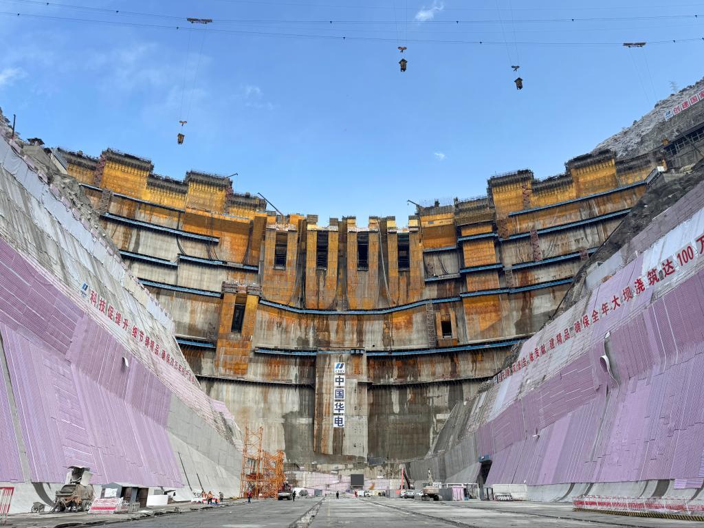 正在建設(shè)中的葉巴灘水電站混凝土雙曲拱壩。(受訪(fǎng)單位供圖)