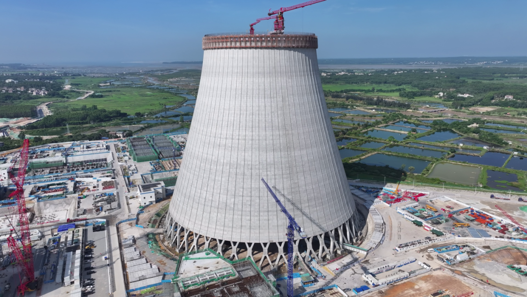 6月2日,國家電投集團(tuán)廣東廉江核電項目1號機(jī)組冷卻塔筒壁第100節(jié)混凝土澆筑順利完成,塔體高度達(dá)到161米,標(biāo)志著冷卻塔主體結(jié)構(gòu)穩(wěn)步成型,為后續(xù)雙曲線收束段施工奠定了堅實基礎(chǔ)。