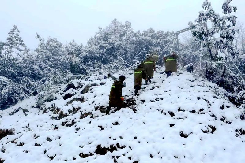 ▲國(guó)網(wǎng)四川電力員工踏雪搬運(yùn)索道龍門(mén)架材料