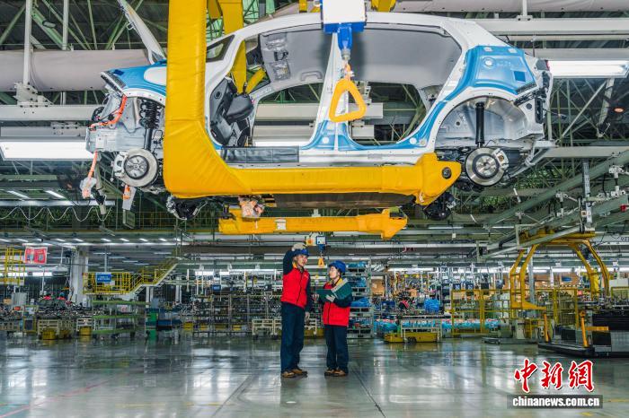 吉利汽車錢塘制造基地,電力工作人員了解企業(yè)生產(chǎn)用電需求。丁豪 攝