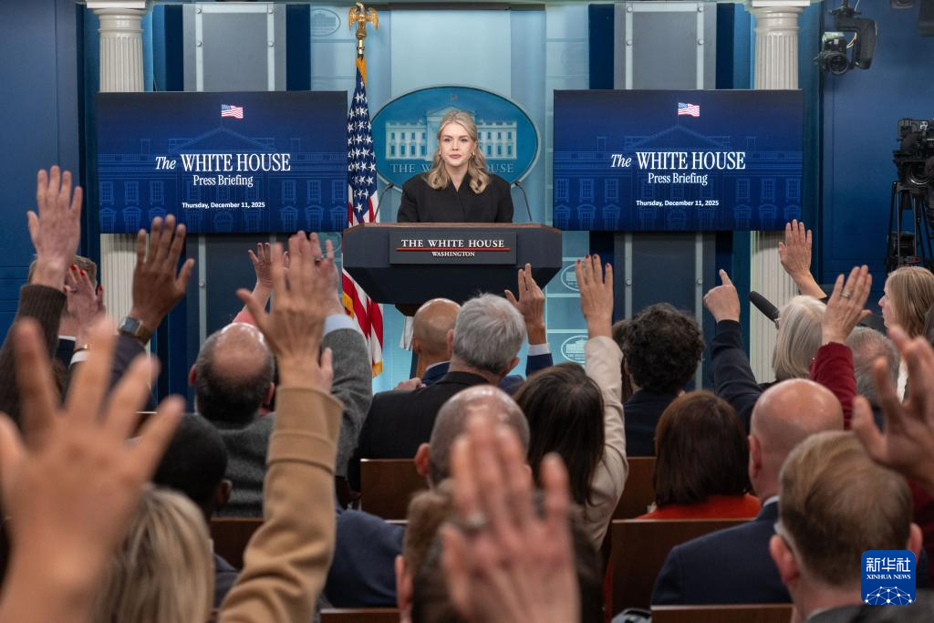 12月11日,在美國首都華盛頓白宮,白宮新聞秘書卡羅琳·萊維特出席記者會。新華社發(fā)(李源清攝)