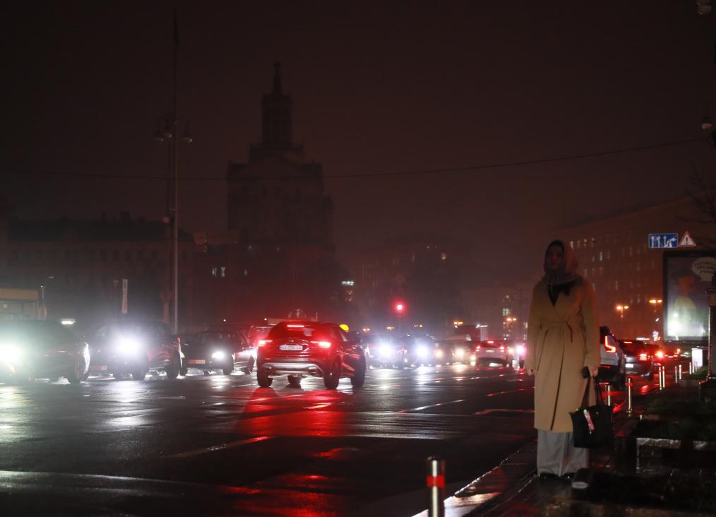 2025年11月20日,因俄羅斯對烏克蘭發(fā)動大規(guī)??找u,烏首都基輔主要街道的照明設(shè)施出現(xiàn)大面積停電,夜色中市民在路邊等車。新華社記者李東旭攝