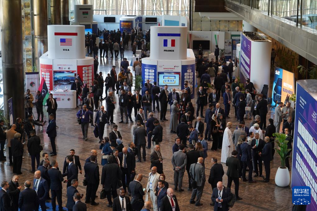 這是1月24日在利比亞首都的黎波里拍攝的第四屆利比亞能源與經(jīng)濟(jì)峰會會場。新華社發(fā)(哈澤姆·圖爾基亞攝)