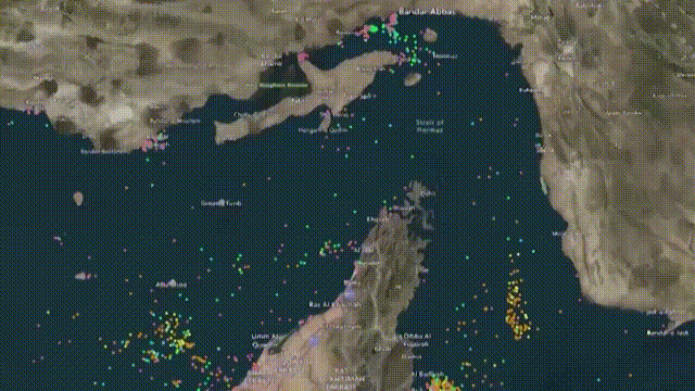 倫敦證券交易所集團(tuán)通過船舶追蹤器動(dòng)態(tài)監(jiān)測(cè)霍爾木茲海峽周圍的船只數(shù)量。