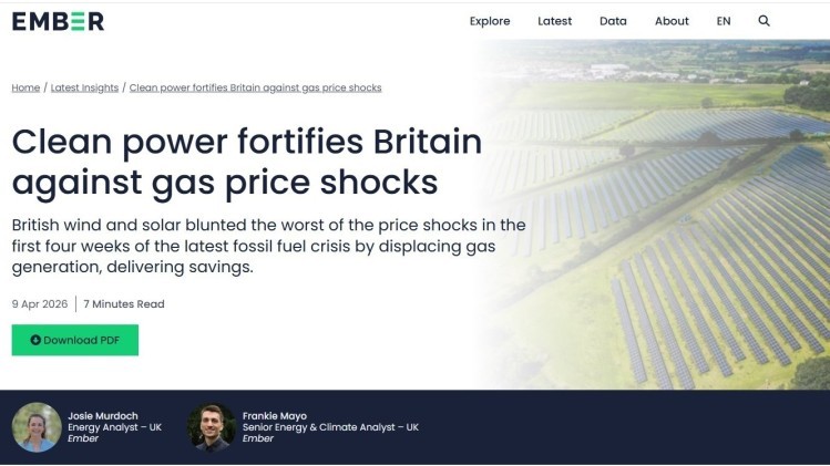 英國氣候及能源智庫恩伯公司4月9日發(fā)布的最新報告稱,得益于可再生能源的使用不斷增加,自中東地區(qū)沖突爆發(fā)以來,英國并未受到天然氣價格飆升的沖擊。