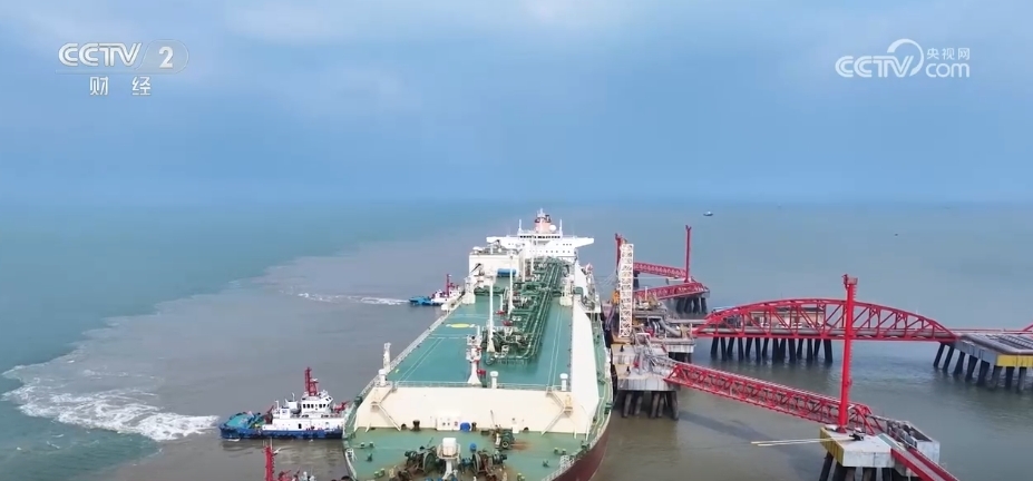 在江蘇如東的洋口港,一艘來自卡塔爾的大型液化天然氣運輸船緩緩靠泊,滿載著超過11萬噸液化天然氣。