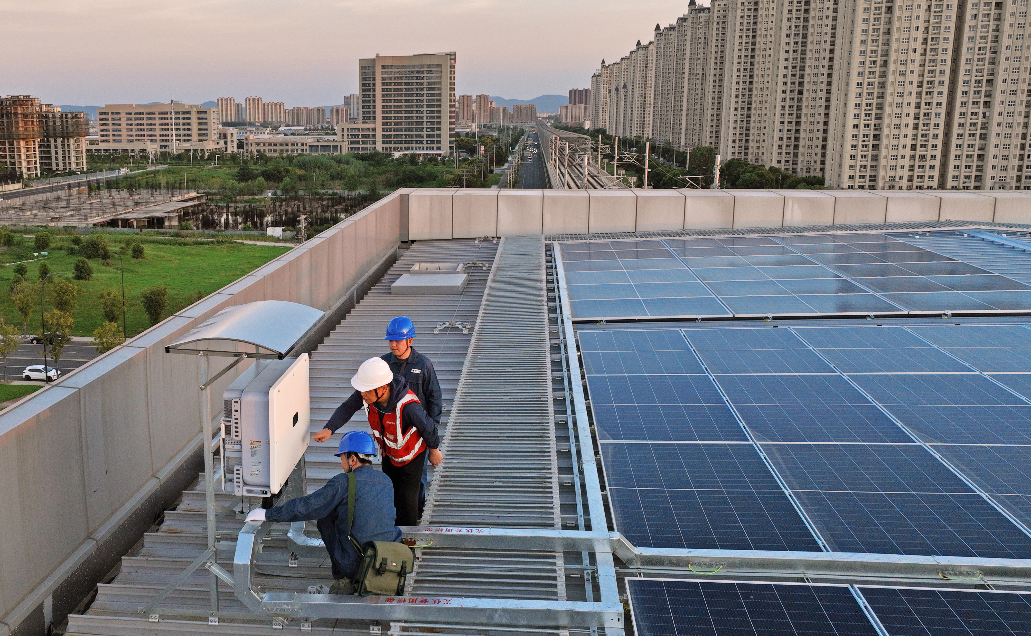 9月3日,國網(wǎng)來安縣供電公司工作人員在滁寧鐵路汊河新城站對全國首個軌道分布式光伏發(fā)電項(xiàng)目開展竣工驗(yàn)收工作。徐艷攝