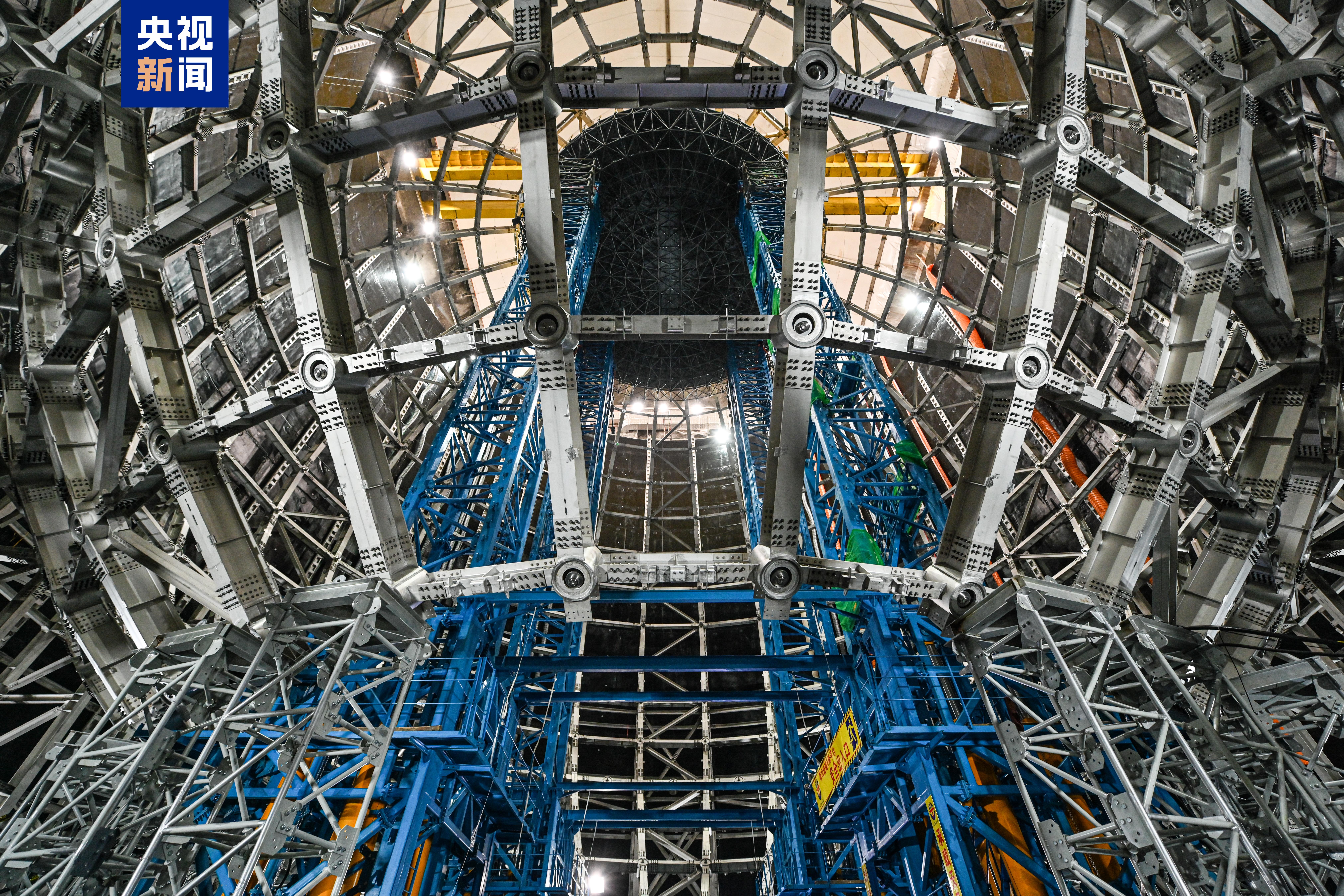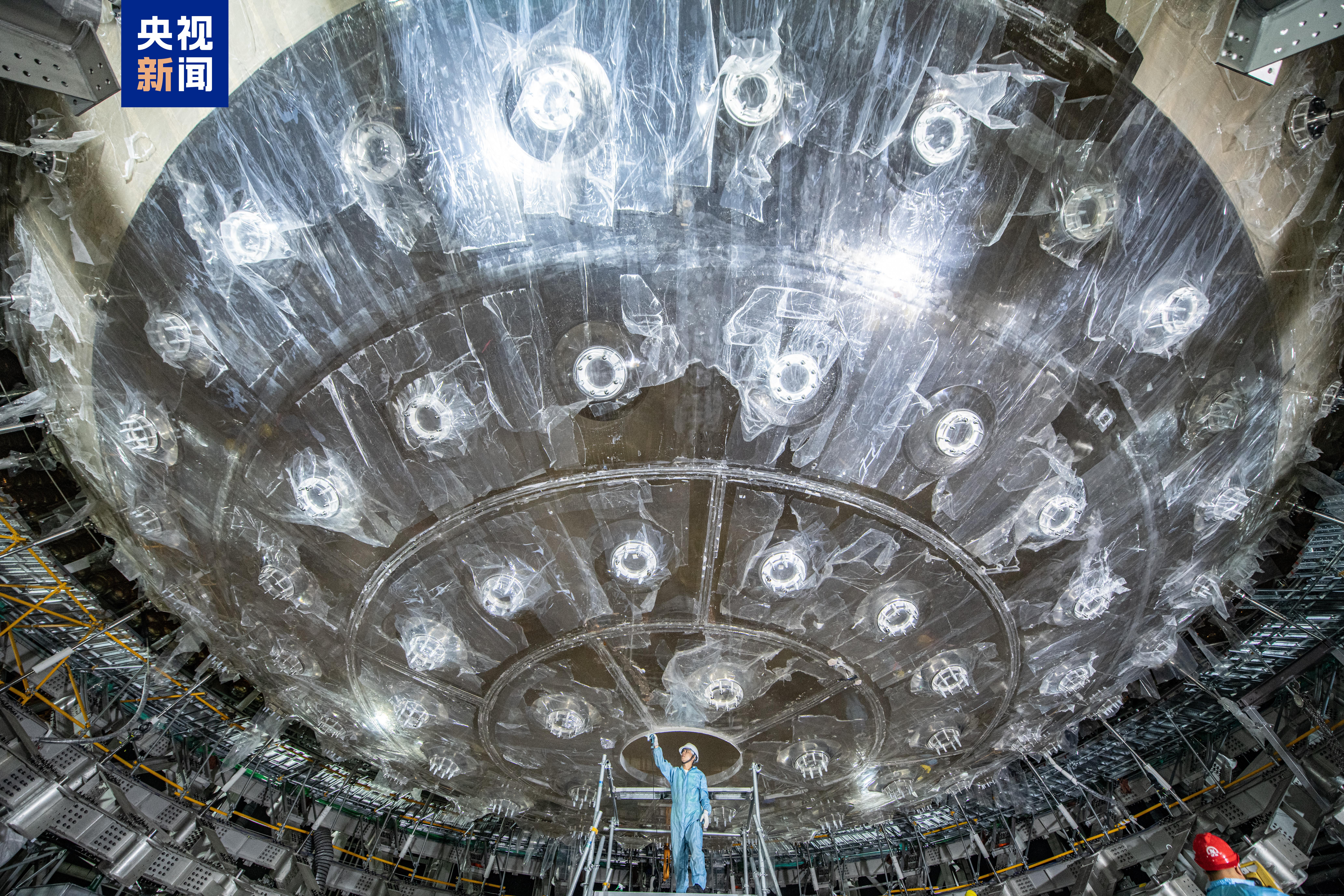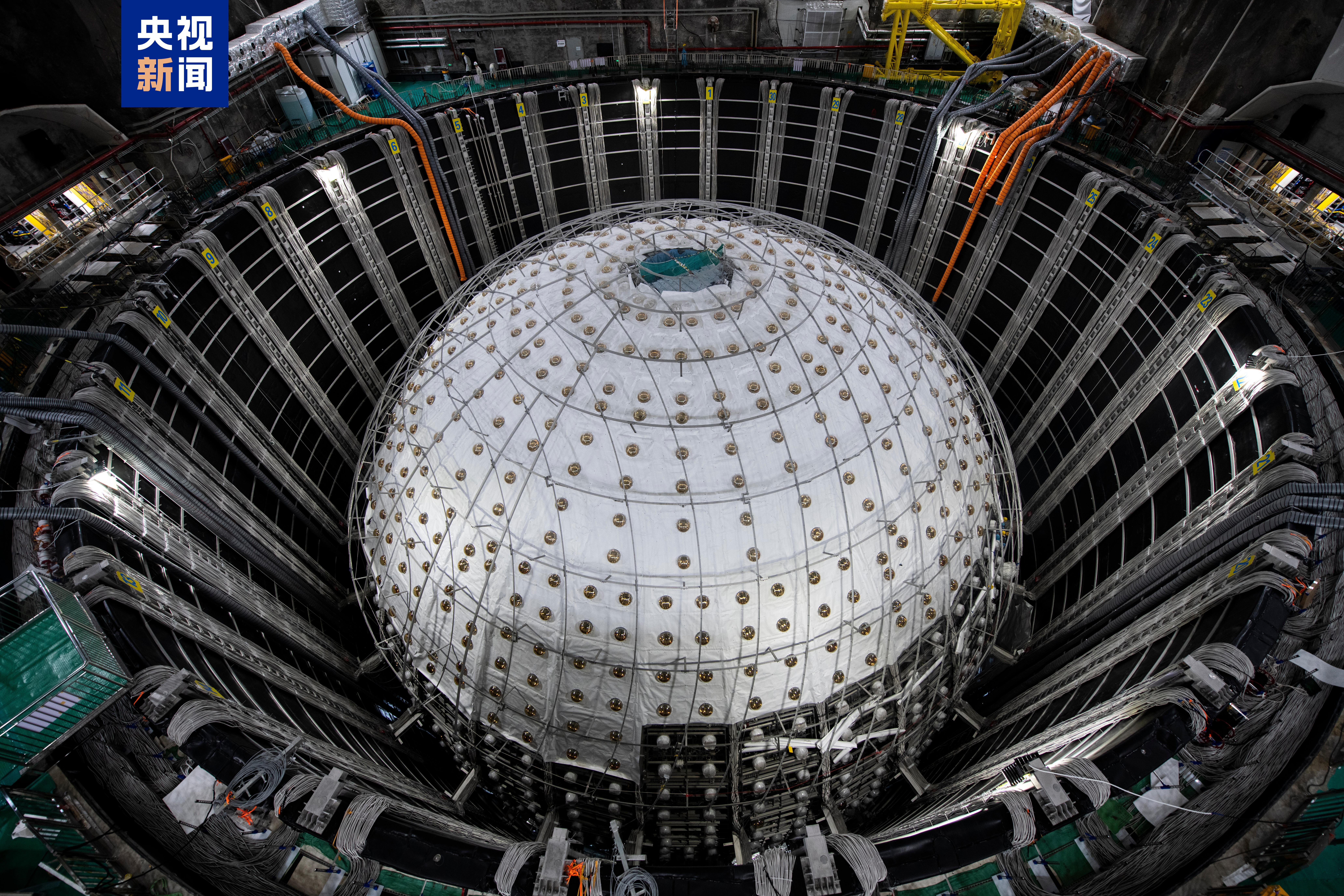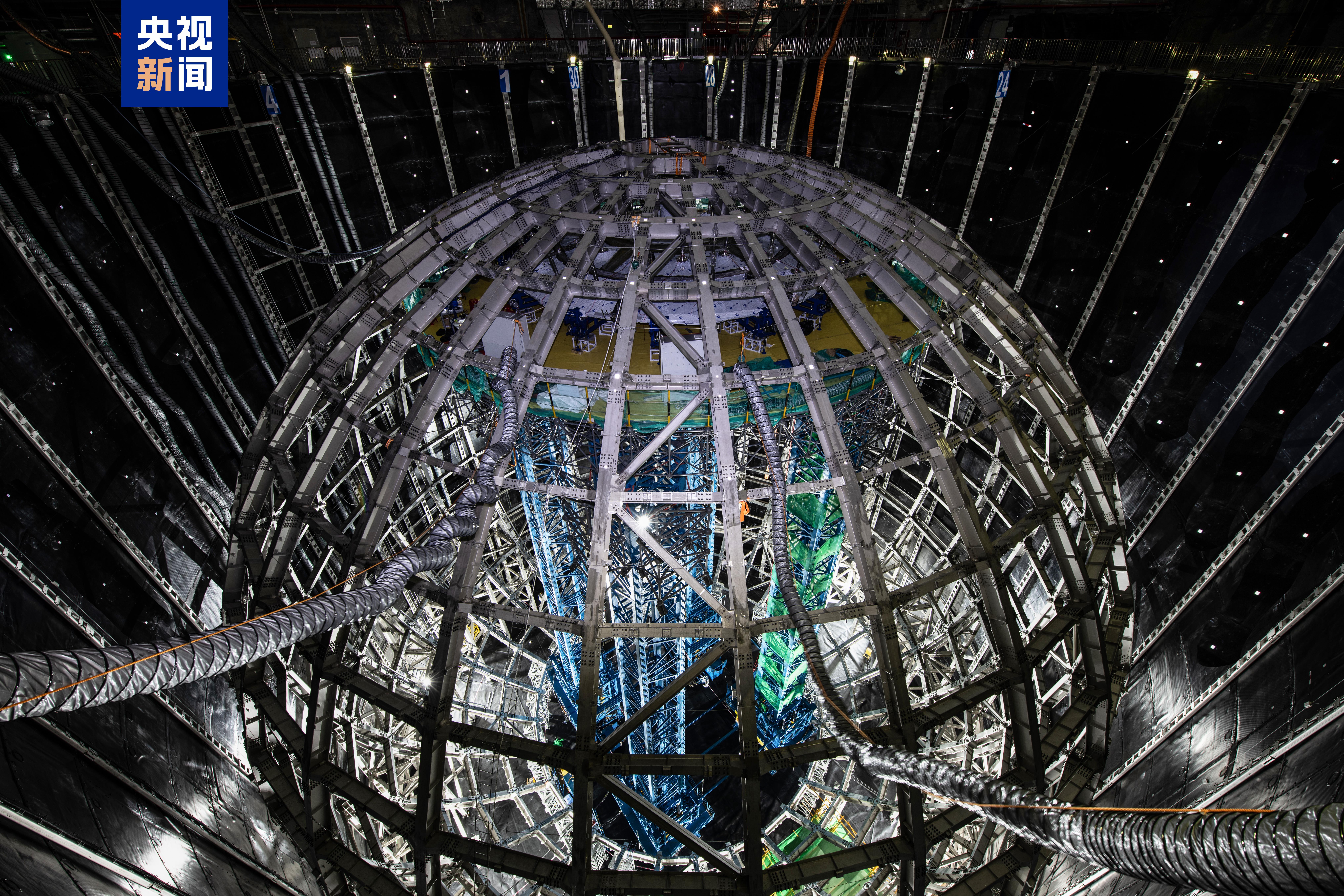 江門中微子實驗2013年立項,2015年開工建設(shè)地下實驗硐室,2021年底,地下硐室交付使用并開始探測器安裝。目前,江門中微子實驗中心探測器最內(nèi)層的有機玻璃球已合攏,外層的不銹鋼網(wǎng)架和光電倍增管也在有序合攏中,預(yù)計11月底完成全部安裝任務(wù),并啟動超純水、液體閃爍體的灌裝,2025年8月正式運行取數(shù),預(yù)計運行約30年。