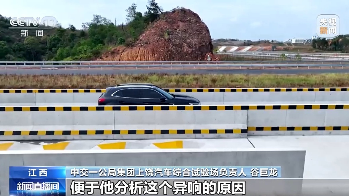 中交一公局集團(tuán)上饒汽車綜合試驗(yàn)場(chǎng)負(fù)責(zé)人 谷巨龍:這兩面墻就會(huì)把這個(gè)聲音更好地集中傳遞到測(cè)試工程師那里,便于他分析這個(gè)異響的原因,包括汽車的底盤、發(fā)動(dòng)機(jī)以及其他一些異響狀況。