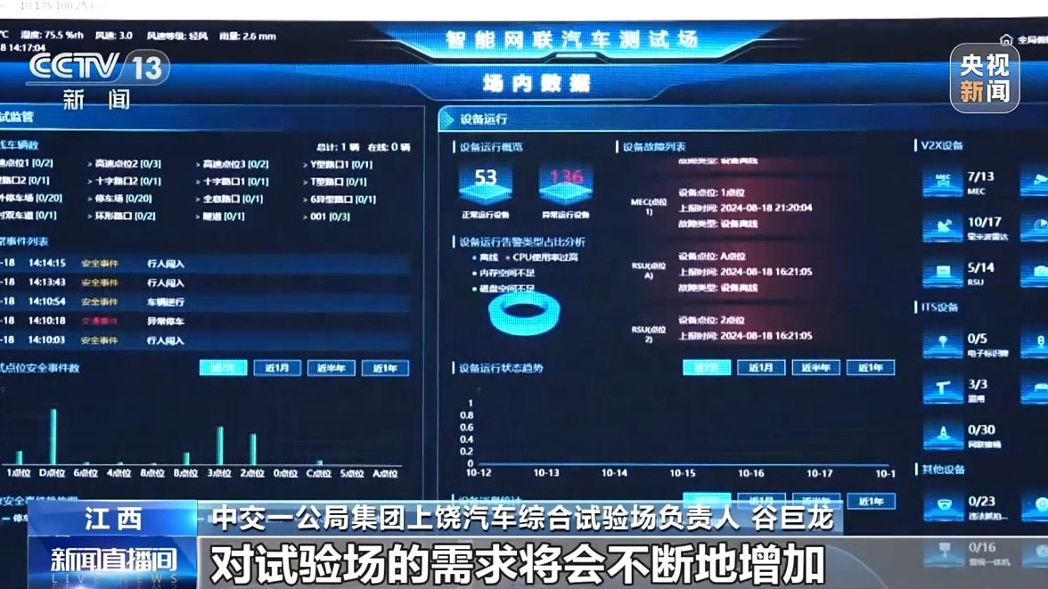 中交一公局集團(tuán)上饒汽車綜合試驗(yàn)場(chǎng)負(fù)責(zé)人 谷巨龍:隨著汽車行業(yè)向著電動(dòng)化、智能化、網(wǎng)聯(lián)化的趨勢(shì)發(fā)展,新技術(shù)的不斷應(yīng)用,對(duì)試驗(yàn)場(chǎng)的需求將會(huì)不斷增加,我們的智能網(wǎng)聯(lián)測(cè)試將為汽車測(cè)試研發(fā)和產(chǎn)業(yè)鏈發(fā)展升級(jí)提供更多基礎(chǔ)條件,共同推動(dòng)汽車行業(yè)的高質(zhì)量發(fā)展。(李偉代 敖剛 石坤 上饒臺(tái))