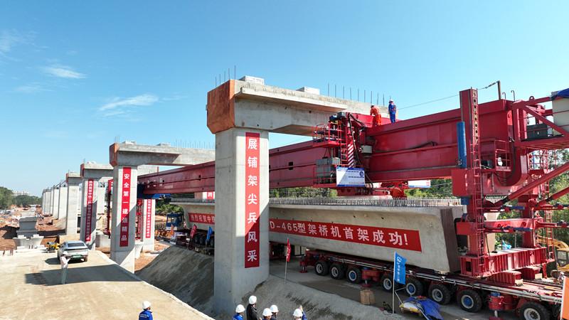 11月28日,全球首臺千噸級多模式新能源架橋機“應(yīng)龍?zhí)枴痹谥檎馗哞F江機段JJZQ-8標(biāo)完成首架,標(biāo)志著由中國中鐵工業(yè)旗下中鐵科工研制的全球首臺千噸級新能源架橋機研制成功。