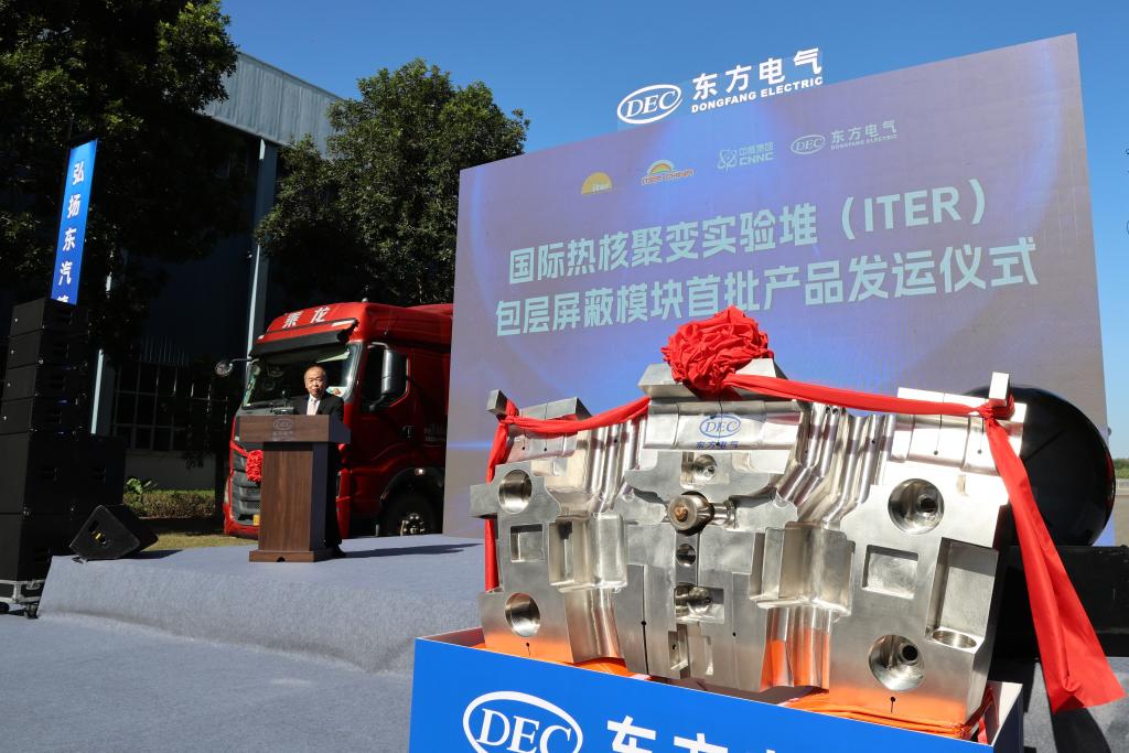 國際熱核聚變實驗堆(ITER)包層屏蔽模塊首批產(chǎn)品發(fā)運儀式11月29日在廣州舉行。產(chǎn)品由東方電氣集團(tuán)承制,首批48件包層屏蔽模塊以水陸聯(lián)運方式發(fā)往法國。