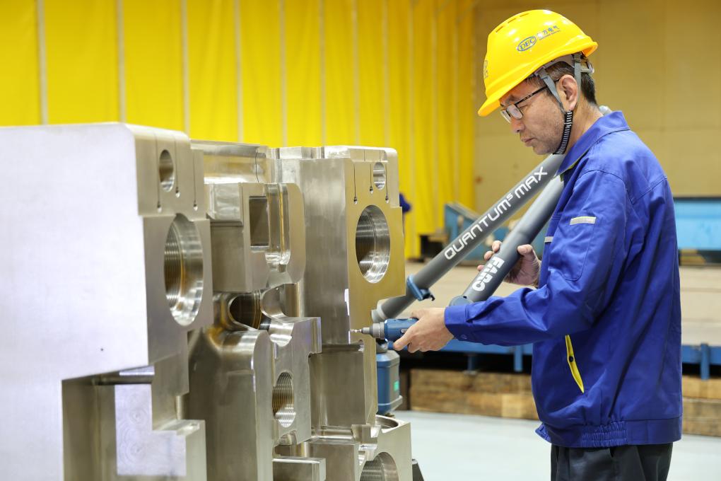 11月29日,檢測人員在對包層屏蔽模塊進(jìn)行尺寸檢測。新華社記者黃國保攝