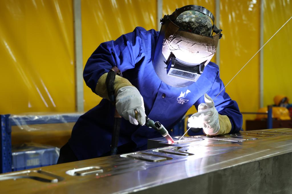 11月29日,焊工在對包層屏蔽模塊進(jìn)行蓋板焊接。新華社記者黃國保攝
