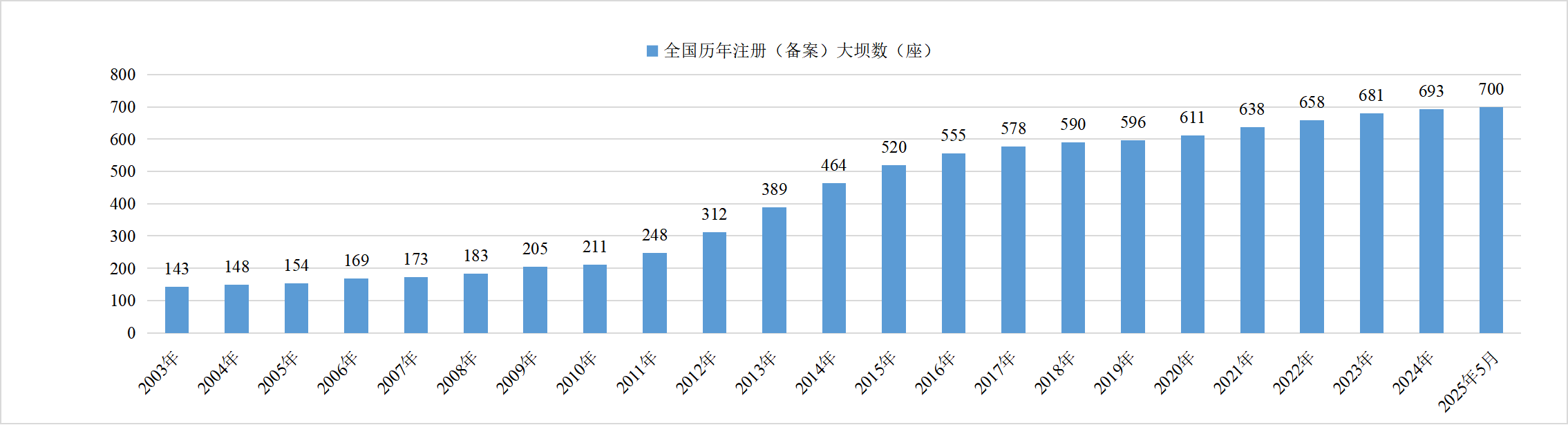 全國(guó)注冊(cè)水電站大壩數(shù)量達(dá)到700座