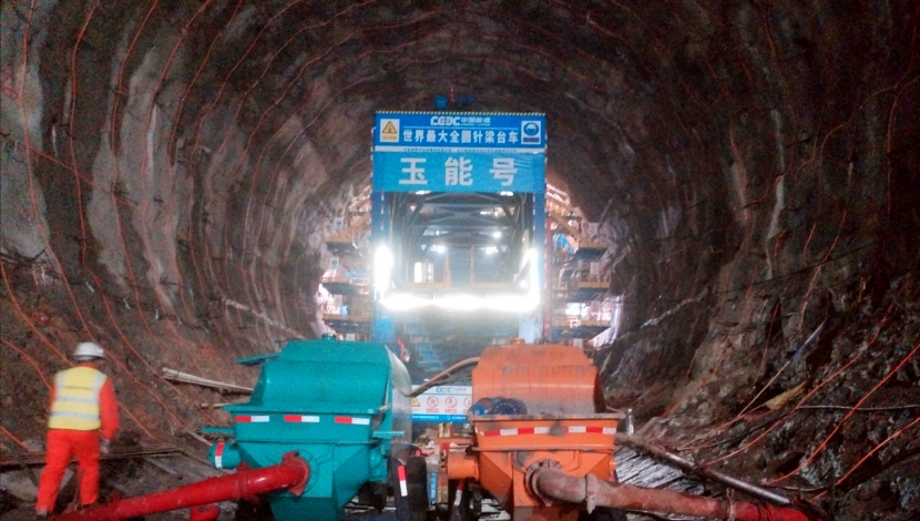 酒泉玉門項目地下工程人工硐室規(guī)模大、難度大、標準高,屬世界首例,無配套施工裝備。為滿足項目施工規(guī)格、工藝、進度等要求,由中國能建數(shù)科集團聯(lián)合長江設計集團及設備廠家共同研發(fā)定制,適配內徑15米的隧洞、控制面積206平方米、每倉混凝土176立方米的“全圓針梁-鋼筋臺架一體化臺車”?!坝衲芴枴笨赏瑫r完成單倉6米澆筑和6米鋼筋綁扎,針梁系統(tǒng)和鋼筋臺架系統(tǒng)協(xié)同工作,不僅提升了混凝土澆筑的施工效率,更在保障施工質量方面發(fā)揮了關鍵作用。