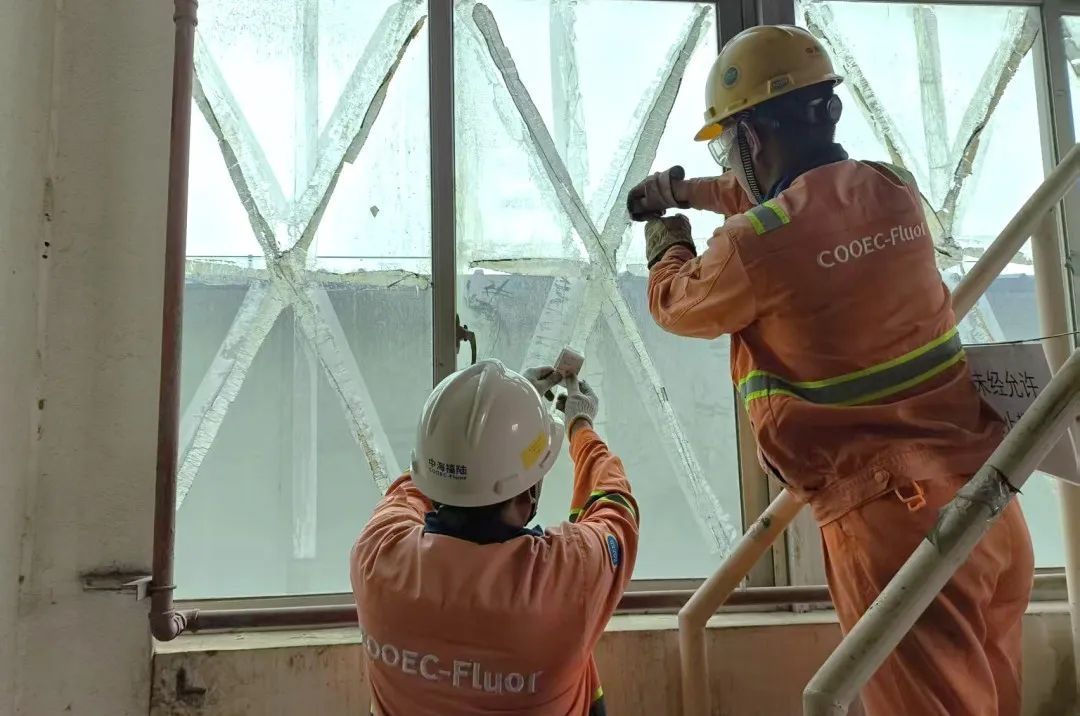 海油工程珠海深水裝備制造基地迅速啟動防臺風(fēng)應(yīng)急預(yù)案,組織應(yīng)急突擊隊對現(xiàn)場風(fēng)險隱患展開全面排查。基地強化對各辦公樓宇、車間門窗密封性檢查,用膠帶對玻璃進(jìn)行加固處理,清理疏通排水管道,備齊應(yīng)急物資,保障人員安全、生產(chǎn)穩(wěn)定。