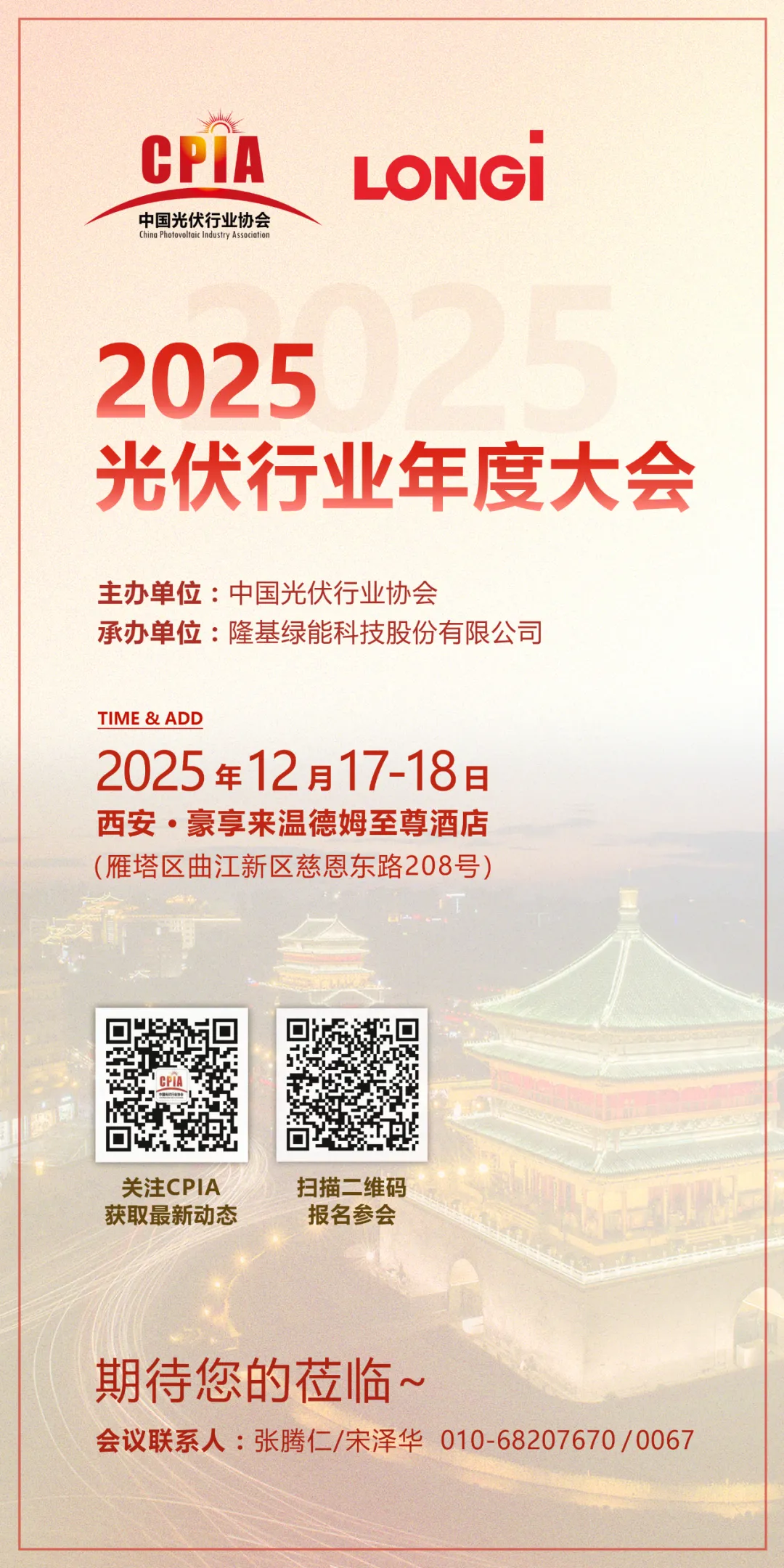為深入貫徹落實我國“雙碳”戰(zhàn)略目標(biāo),積極響應(yīng)國家新型能源體系建設(shè)部署,破解擺脫光伏行業(yè)“內(nèi)卷”困境,推動光伏產(chǎn)業(yè)高水平高質(zhì)量協(xié)同與可持續(xù)發(fā)展,中國光伏行業(yè)協(xié)會將于2025年12月17至18日在陜西省西安市舉辦2025光伏行業(yè)年度大會。
