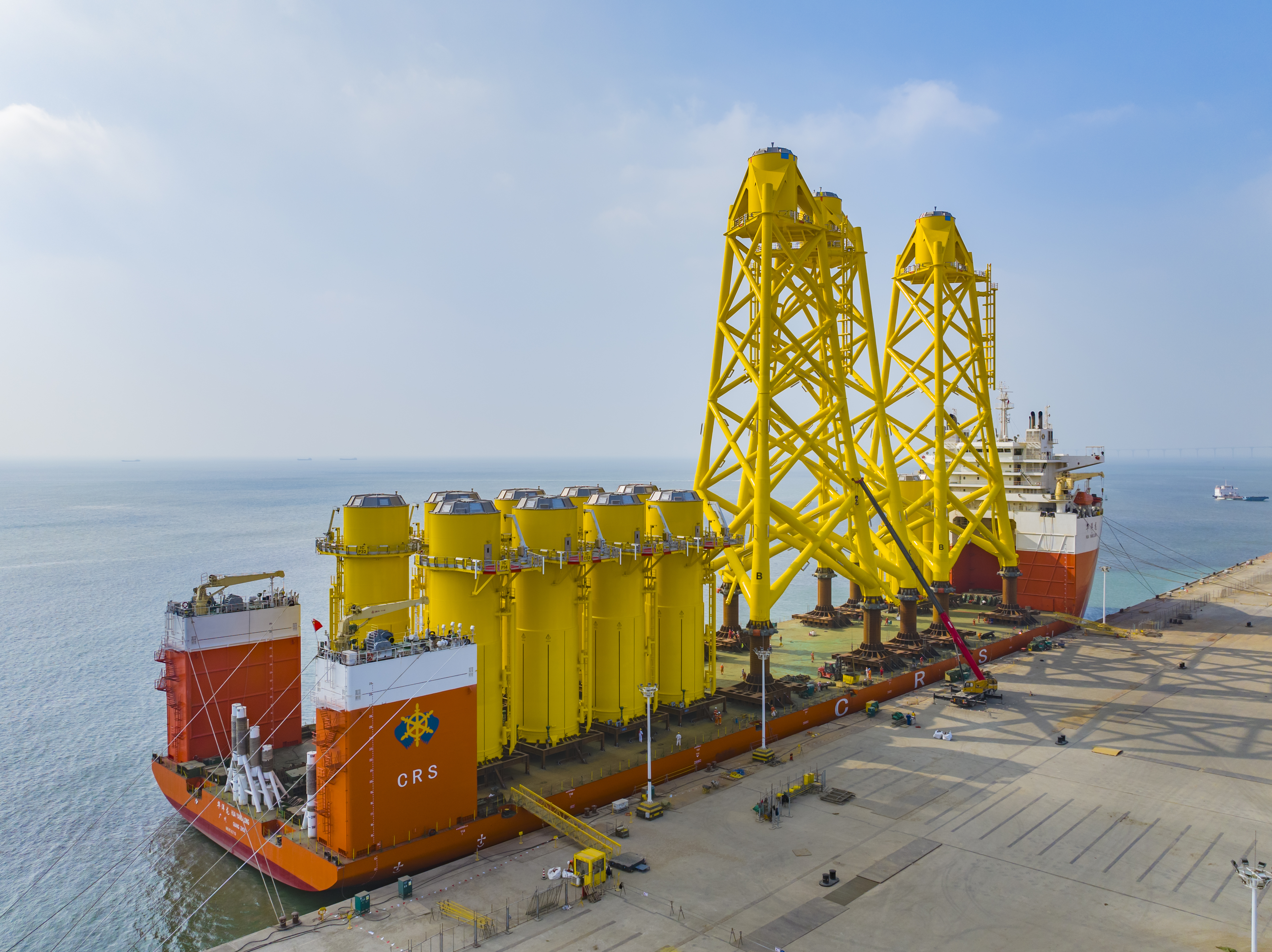 歐洲海上風(fēng)電項(xiàng)目導(dǎo)管架裝船完成。劉聰攝