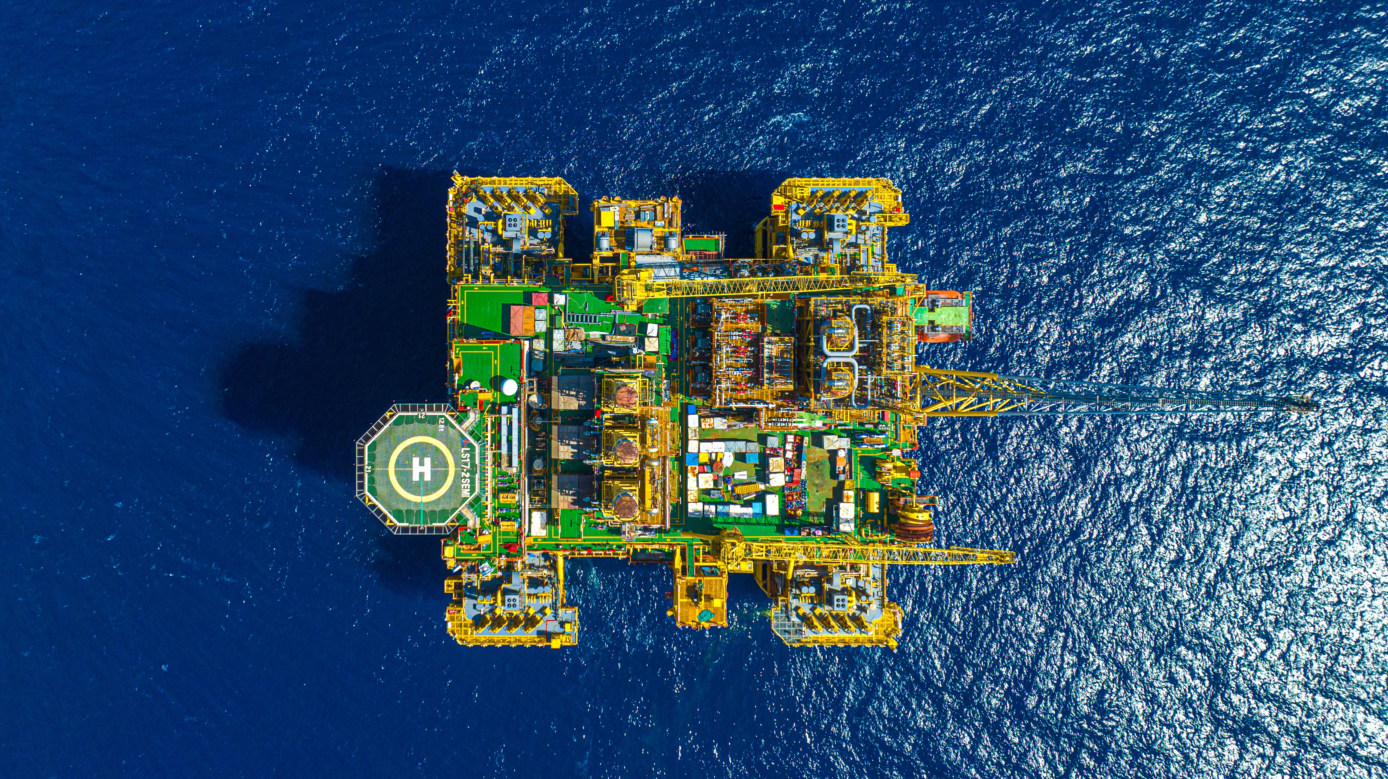 “深海一號”是我國首個自營超深水大氣田,它的建成投產(chǎn)為環(huán)海南島海上氣田群增產(chǎn)帶來了強勁的深海動能。圖為“深海一號”能源站俯拍。徐海舟 攝