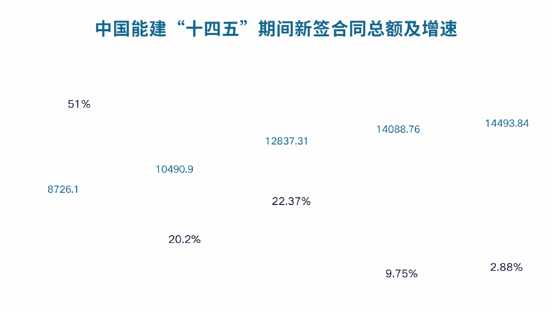 兩家央企新簽合同額增速與上年相比有所放緩。“十四五”以來,兩家央企簽約額增速經(jīng)歷了拋物線走勢(shì)。需要看到的是,近兩年來增速放緩的背后是結(jié)構(gòu)性躍升。