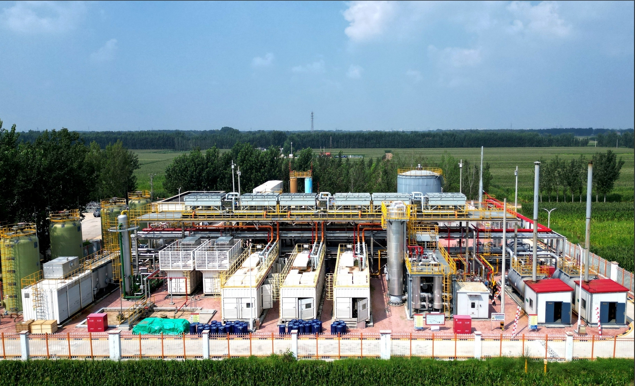 部分微生物能夠?qū)CUS工程封存的二氧化碳轉(zhuǎn)化為甲烷或有機(jī)酸,以實(shí)現(xiàn)資源利用。圖為全國(guó)首個(gè)百萬(wàn)噸級(jí)CCUS示范工程勝利油田高89處理站。劉智峰/視覺(jué)中國(guó)
