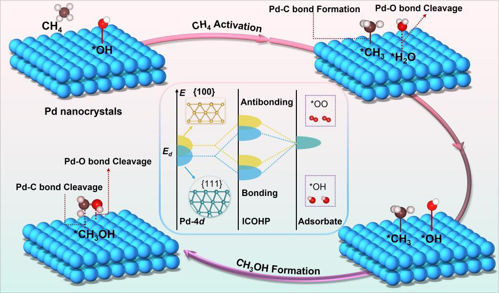 該團(tuán)隊(duì)設(shè)計(jì)出一種納米級(jí)的鈀催化劑,可精準(zhǔn)識(shí)別并激活甲烷分子。更關(guān)鍵的是,它對(duì)目標(biāo)產(chǎn)物甲醇具有一種“快速釋放”的特性:一旦寶貴的甲醇分子生成,催化界面會(huì)立即將其“彈出”,避免在反應(yīng)環(huán)境中停留過久而被過度氧化。