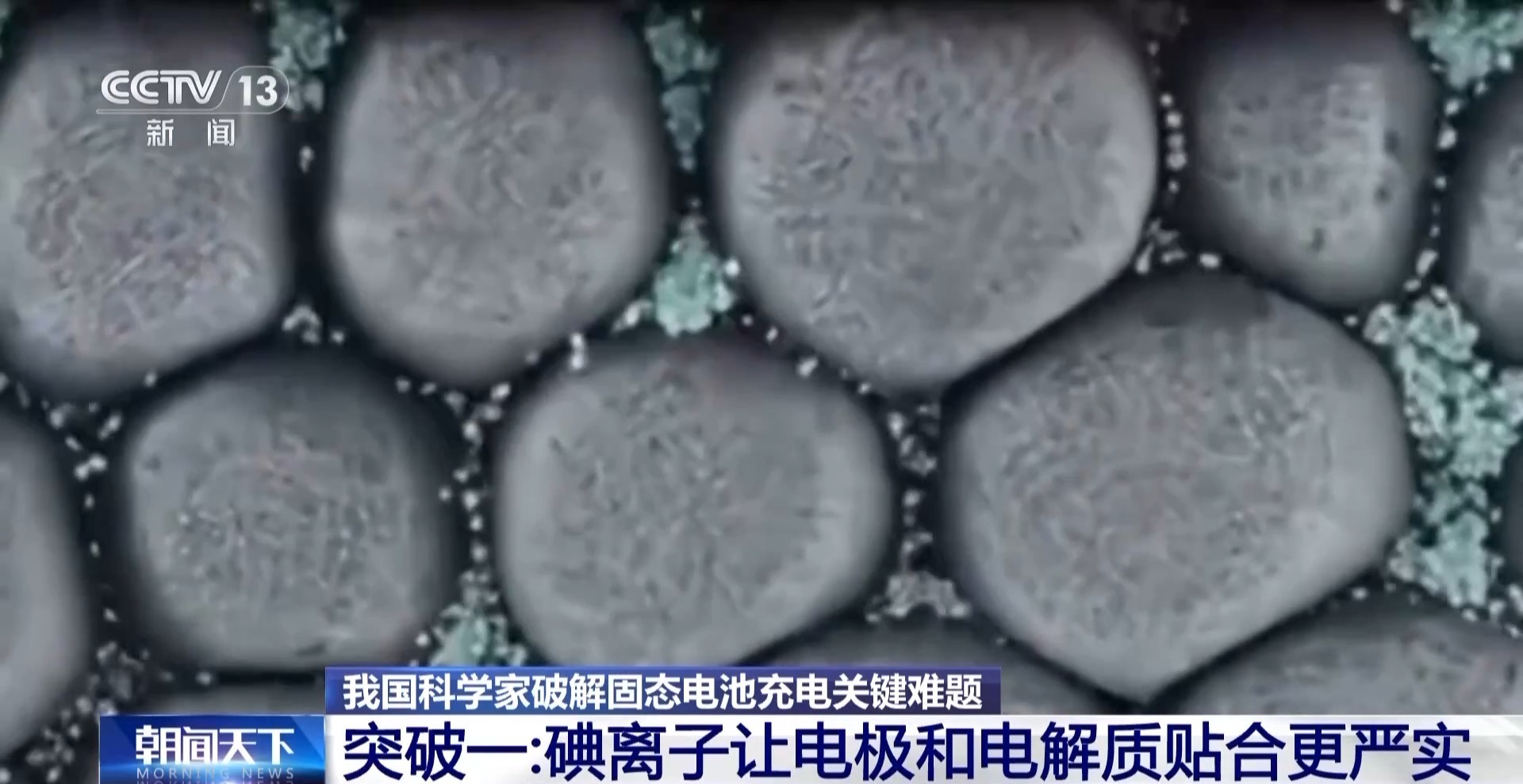 第一是中國科學(xué)院物理研究所聯(lián)合多家科研團(tuán)隊(duì)開發(fā)的“特殊膠水”——碘離子。在電池工作時(shí),碘離子像“交通警察”一樣,順著電場跑到電極和電解質(zhì)的接口處。主動(dòng)吸引通行的鋰離子過來,像流沙一樣,哪里有小縫隙、小孔洞,就自動(dòng)流過去填滿。通過一番縫縫補(bǔ)補(bǔ),電極和電解質(zhì)就能自己貼得嚴(yán)嚴(yán)實(shí)實(shí),從而突破了全固態(tài)電池走向?qū)嵱玫淖畲笃款i。