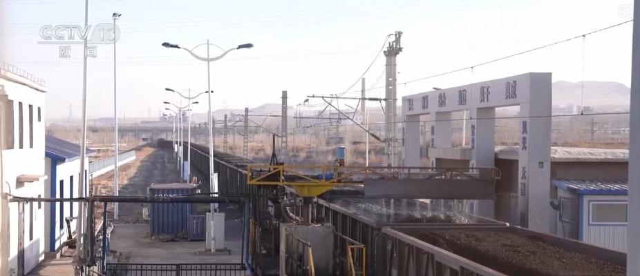 同時(shí),“燈泡線”全面采用封閉式裝車系統(tǒng),配合抑塵劑噴灑技術(shù)。煤炭從礦坑經(jīng)由封閉管廊直接輸送至倉內(nèi),全程無粉塵外溢。裝車后系統(tǒng)自動(dòng)噴灑抑塵劑,在煤表面形成約10毫米厚的“液體篷布”,有效防止運(yùn)輸過程中的揚(yáng)塵與損耗,實(shí)現(xiàn)了綠色環(huán)保的煤炭保供。