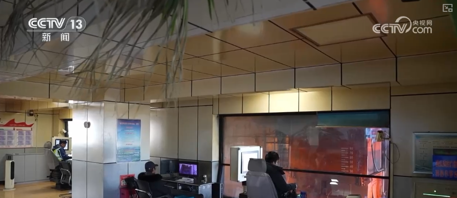 在裝車站的操控室內(nèi)可以更直觀感受到“燈泡線”的裝車效率。這趟列車正以約1公里每小時(shí)的速度緩慢行進(jìn),煤炭經(jīng)過自動(dòng)稱重系統(tǒng)檢測后,工人只需按下手柄,就能從上方筒倉精準(zhǔn)注入車廂。