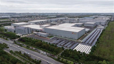 位于中韓(鹽城)產(chǎn)業(yè)園內(nèi)的SK新能源一期動力電池生產(chǎn)基地(無人機照片)。 新華社記者 李博 攝