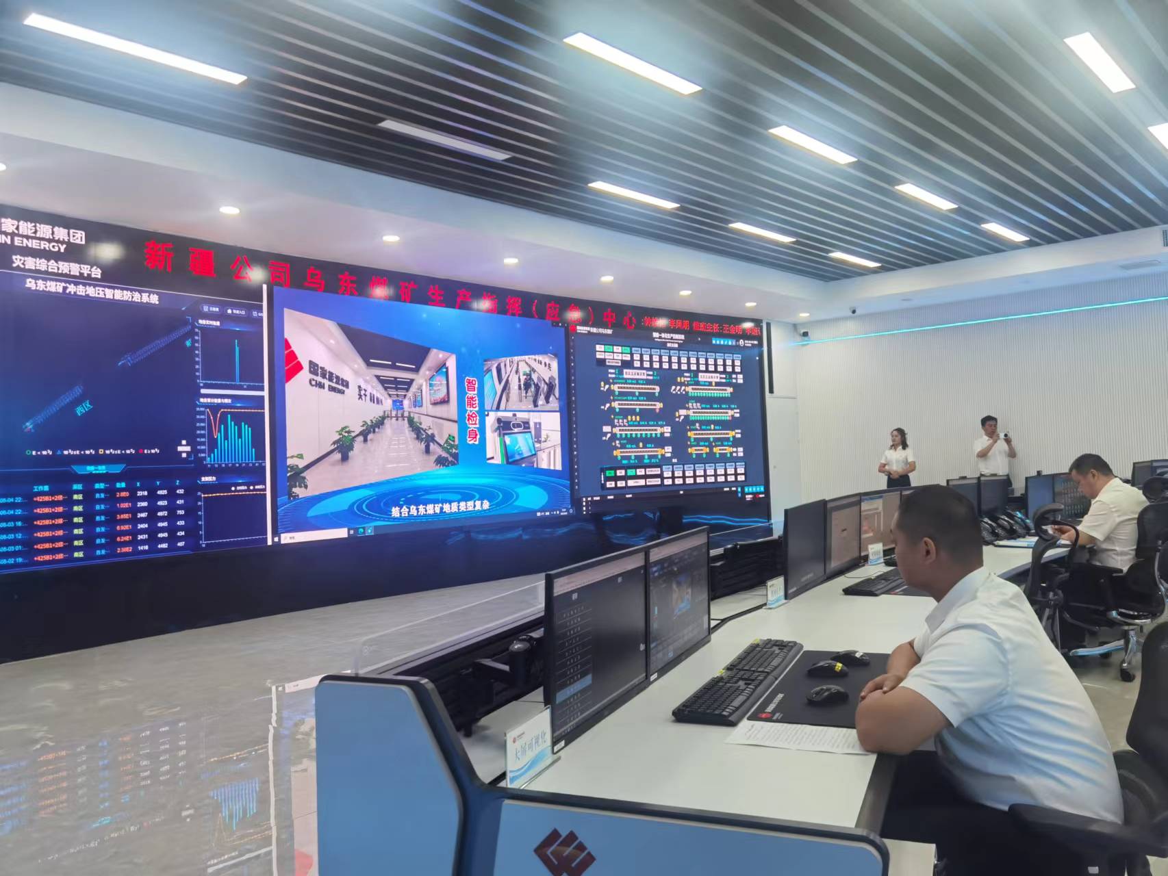 8月5日,國家能源集團(tuán)新疆能源有限責(zé)任公司烏東煤礦生產(chǎn)指揮(應(yīng)急)中心內(nèi),工作人員緊盯大屏,保障井下安全生產(chǎn)。天山網(wǎng)-新疆日報記者于江艷攝