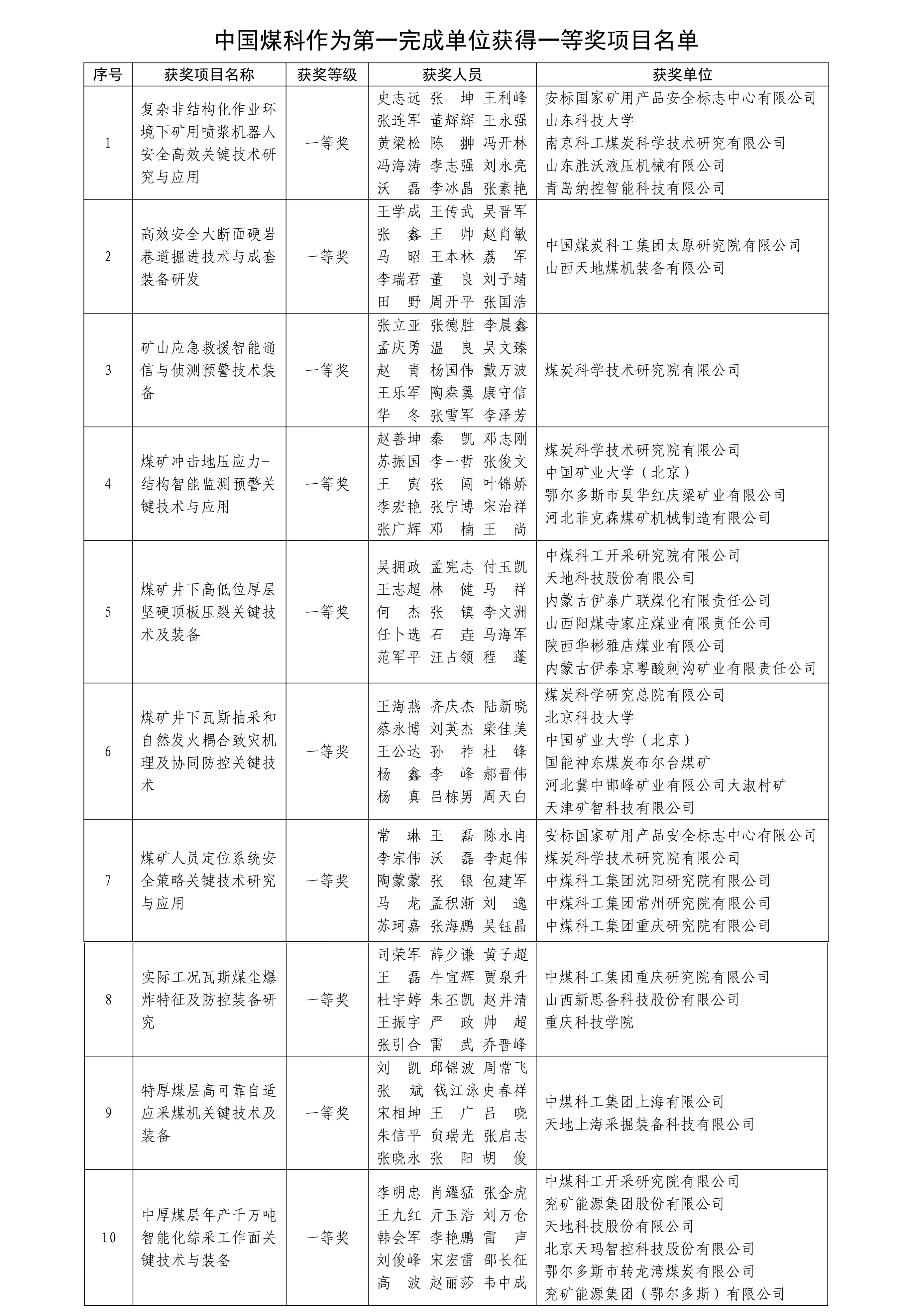 近日,中國安全生產(chǎn)協(xié)會發(fā)布《中國安全生產(chǎn)協(xié)會第四屆安全科技進步獎獲獎名單公告》,中國煤炭科工集團81項科技成果榮獲第四屆安全科技進步獎,其中一等獎14項、二等獎46項、三等獎21項,獲獎數(shù)量同比增長19%,一等獎數(shù)量增長40%,獲獎數(shù)量和質(zhì)量再創(chuàng)歷屆新高。中國煤科所屬企業(yè)作為第一完成單位的獲獎項目共64項,其中一等獎10項、二等獎18項、三等獎36項。