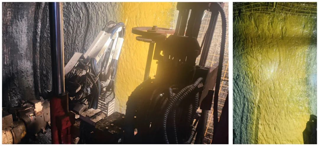 煤礦巷道的支護主要采用錨桿(索)與錨網(wǎng)聯(lián)合支護的手段,錨網(wǎng)拿取、鋪設(shè)、聯(lián)網(wǎng)工藝繁多復(fù)雜,現(xiàn)有臨時支護作用有限,易出現(xiàn)冒頂和片幫。為解決上述難題,開采研究院首次提出巷道表面噴涂高性能材料支護思路,以噴代網(wǎng),同時具有臨時支護作用,提高巷道成巷速度,保證作業(yè)人員安全。