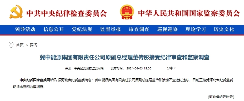 原標(biāo)題:冀中能源集團(tuán)有限責(zé)任公司原副總經(jīng)理董傳彤接受紀(jì)律審查和監(jiān)察調(diào)查