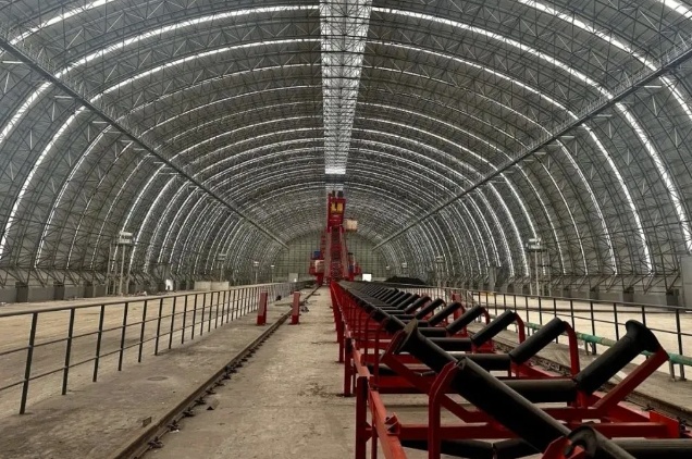 該項目建設(shè)有3個長350米、寬73米、高約12層樓的封閉式儲煤場,其單體規(guī)模在西南地區(qū)屈指可數(shù)。其中,2個儲煤場及配套輸送系統(tǒng)已全面建成,具備儲煤條件。與之配套的3座大型連體儲配煤倉已拔地而起。項目整體靜態(tài)儲煤能力達120萬噸,年吞吐量超500萬噸,建成后將成為西南地區(qū)舉足輕重的煤炭物流樞紐。