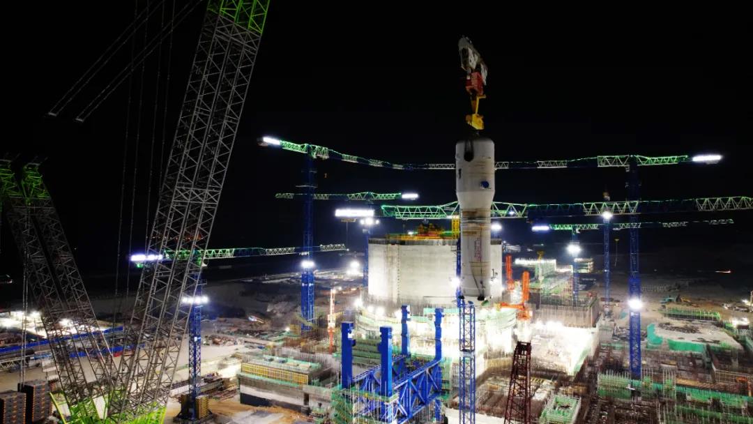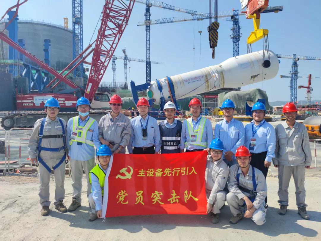 核島主設(shè)備先行引入法施工,是在穹頂?shù)跹b前,采用大型履帶吊將主設(shè)備(包括壓力容器、蒸發(fā)器、主泵泵殼、穩(wěn)壓器,以及設(shè)備就位前所需支撐)引入反應(yīng)堆廠房,改變以往核電機(jī)組傳統(tǒng)的先土建后安裝的順序施工模式,轉(zhuǎn)變?yōu)橥两ā惭b平行施工模式,與常規(guī)方法相比在主回路關(guān)鍵路徑上節(jié)省等待環(huán)吊可用的時間,從而使主回路的安裝工作提前開始,可大幅節(jié)約核電項(xiàng)目的施工工期。漳州核電項(xiàng)目管理大團(tuán)隊(duì)為確保核島主設(shè)備先行引入工作順利推進(jìn),成立了主設(shè)備先行引入專項(xiàng)小組,聯(lián)合中核工程、中核咨詢、中核二三等相關(guān)單位,以周、日例會機(jī)制第一時間協(xié)調(diào)解決了工程推進(jìn)中遇到的各種制約問題。同時以黨建為引領(lǐng),成立主設(shè)備先行引入黨員突擊隊(duì),以黨員為骨干力量,夜以繼日沖鋒在前,有效保障目標(biāo)實(shí)現(xiàn)。