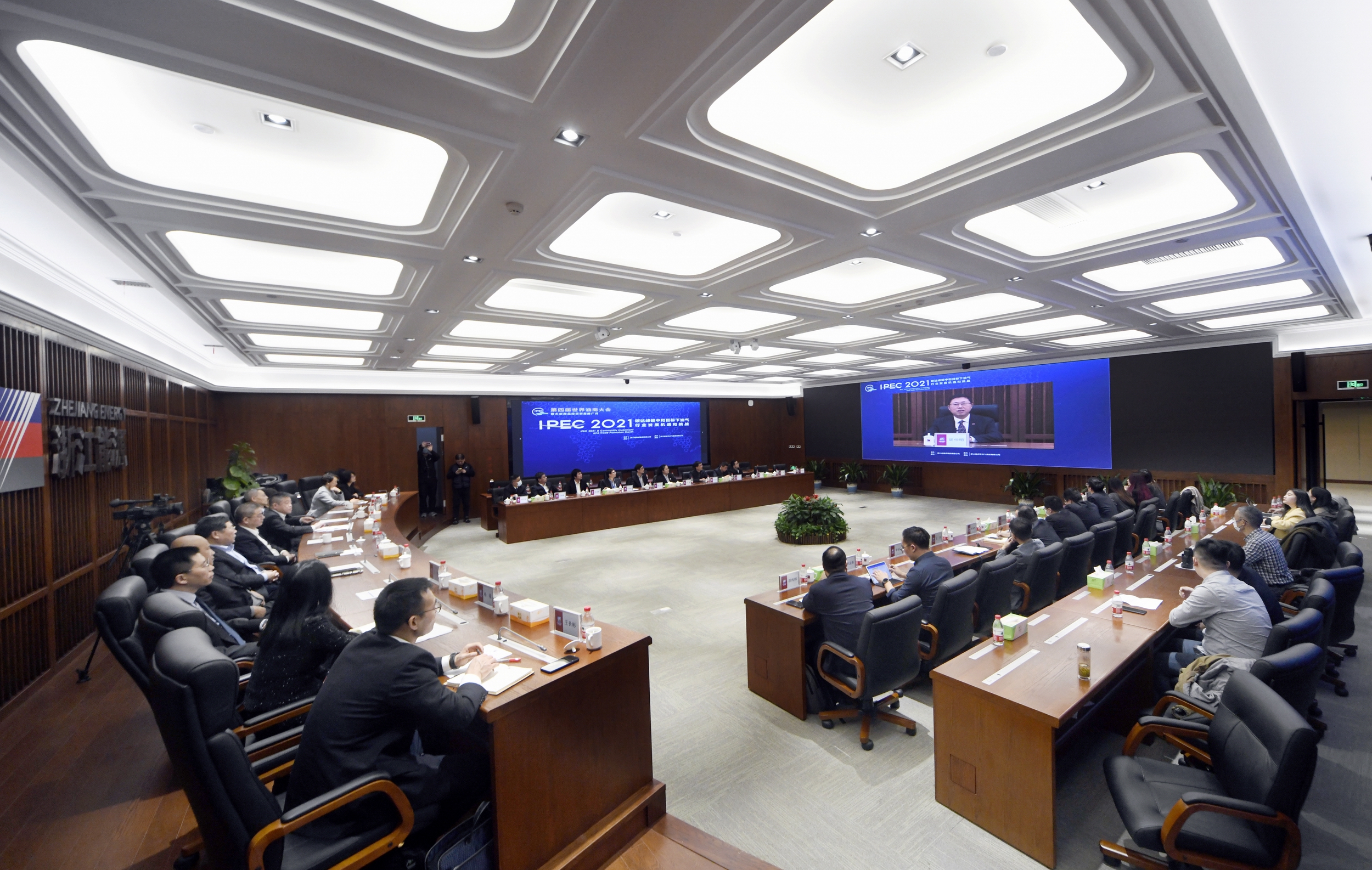 2021年11月9日下午,浙能集團(tuán)董事長(zhǎng)胡仲明在第四屆世界油商大會(huì)作“雙碳”目標(biāo)下推進(jìn)綠色創(chuàng)新合作發(fā)展之路的主旨演講。朱將云 攝
