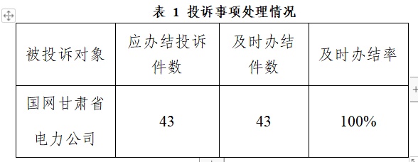 甘肅能源企業(yè)應在12月份辦結投訴43件,全部在10個工作日內(nèi)辦結,及時辦結率100%。
