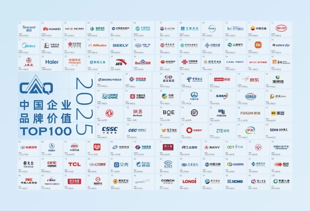2025中國企業(yè)TOP100品牌總價(jià)值達(dá)19.35萬億元,同比增長8.48%,成為中國經(jīng)濟(jì)“韌性強(qiáng)、潛力大、活力足”的生動(dòng)注腳。
