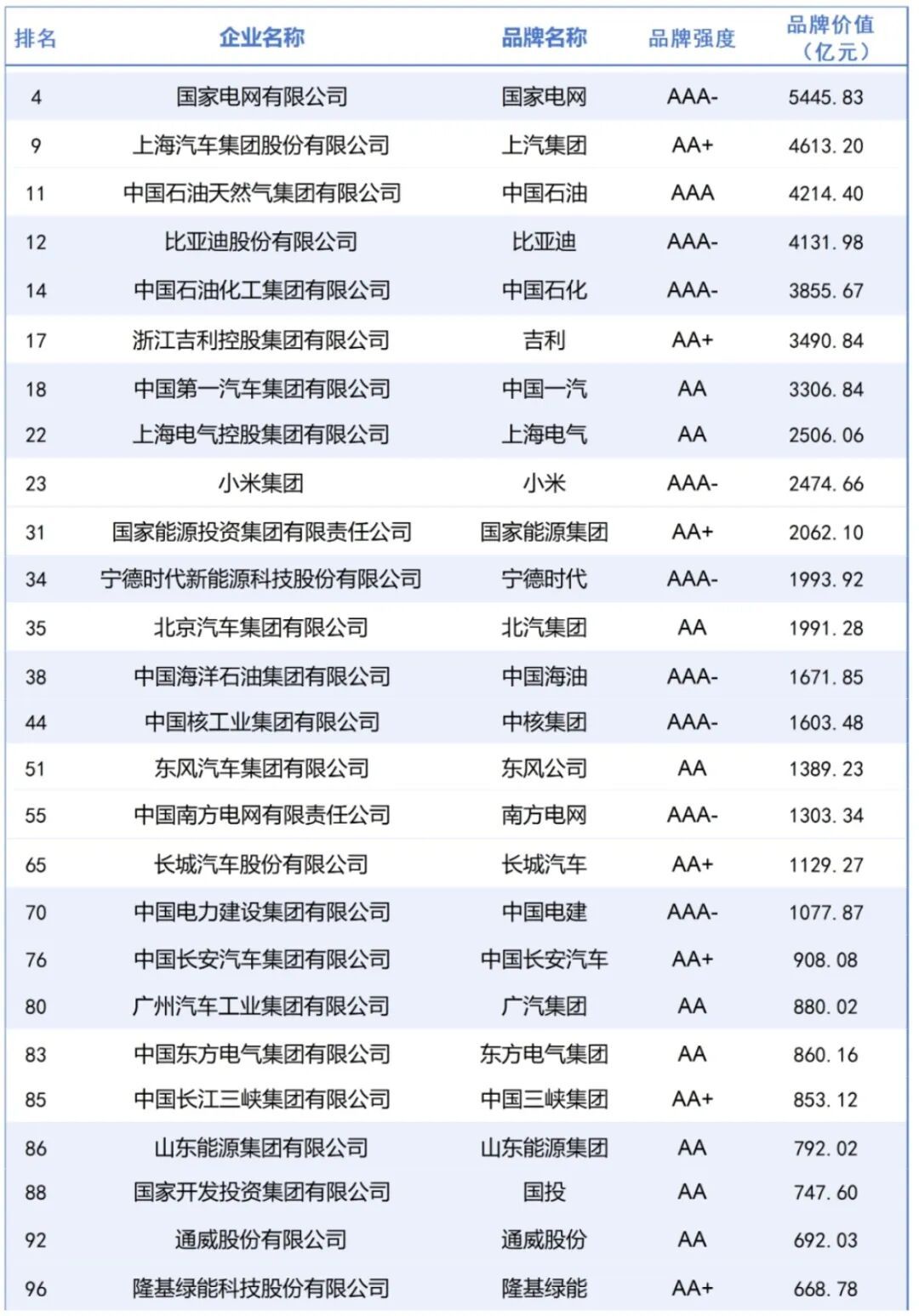 11月3日至4日,由國務(wù)院國資委、全國工商聯(lián)、新華通訊社共同指導(dǎo)的第八屆中國企業(yè)論壇在北京舉辦。論壇發(fā)布了《2025中國企業(yè)品牌價(jià)值TOP100榜單》,其中能源電力及新能源汽車相關(guān)領(lǐng)域共有26家企業(yè)強(qiáng)勢上榜。國家電網(wǎng)、中國石油、中國石化等能源電力行業(yè)巨頭盡顯實(shí)力;吉利、中國一汽、小米等新能源車企,以及動(dòng)力電池及儲(chǔ)能系統(tǒng)龍頭寧德時(shí)代,也在品牌強(qiáng)度與品牌價(jià)值維度均展現(xiàn)出強(qiáng)勁實(shí)力。